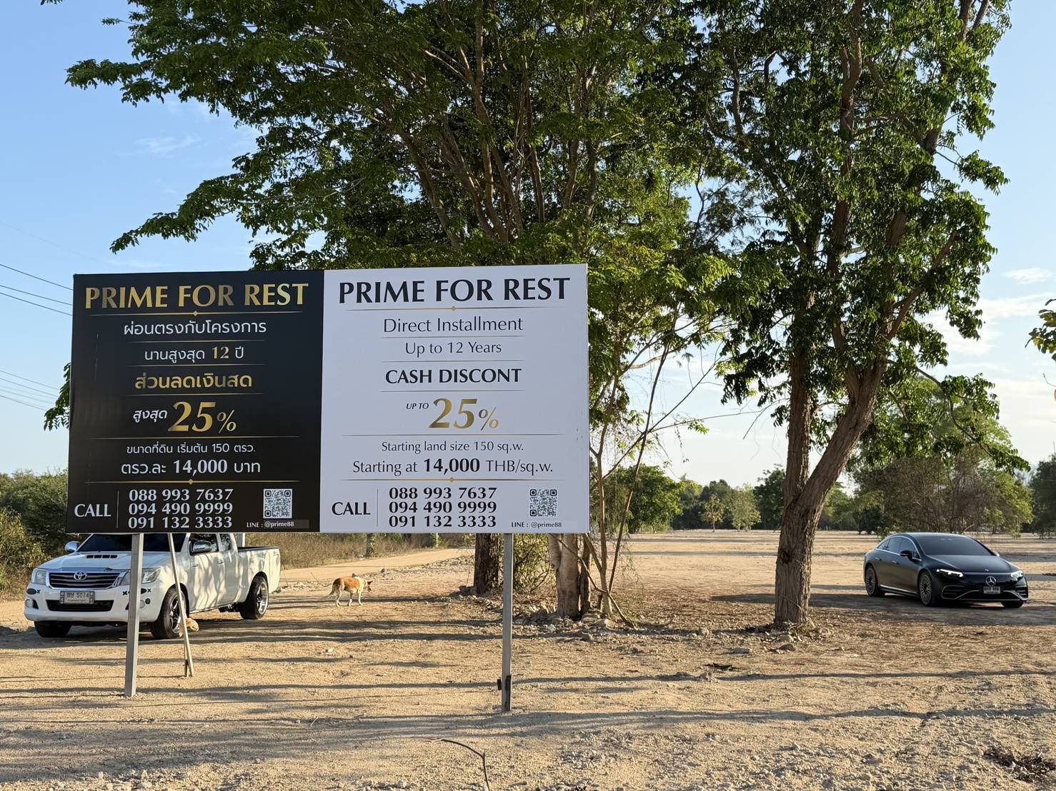 - 1) ที่ดินโฉนดเนื้อที่ 12-0-77 ไร่ ราคา 8,500,000 บาท/ไร่