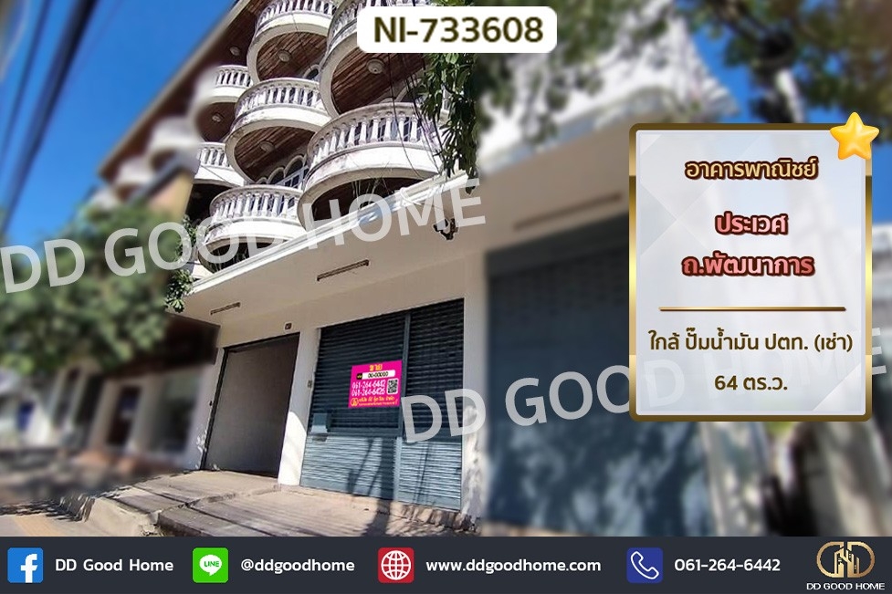 ขายอาคารพาณิชย์ 4 ชั้น 2 คูหาติดกัน ห้องมุม มีที่จอดรถประมาณ 10 คัน ห่างถนนพัฒนาการประมาณ 40 เมตร ซอยพัฒนาการ 64,66 เข้าได้ทั้ง 2 ซอย เหมาะทำเป็นสำนักงาน,โฮมออฟฟิต ,ที่พักอาศัย เดินทางสะดวก เข้าออกได้หลายเส้นทาง