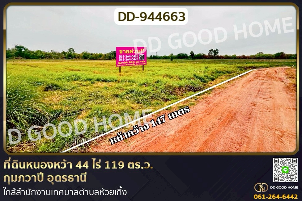 ขายที่ดิน 6-1-93 THB14,261,500 พันดอน กุมภวาปี อุดรธานี ที่ดินแปลงนี้ตั้งอยู่ในทำเลที่ยอดเยี่ยมบนทางหลวงหมายเลข 2 (ถนนมิตรภาพ เส้น อุดร-ขอนแก่น) ติดกับโครงการทางหลวงสายอุดรธานี-บึงกาฬ ซึ่งจะมีขึ้นในอนาคตอันใกล้นี้ ที่ดินแปลงนี้ตั้งอยู่ห่างจากแยกอำเภอกุมภวาปีที่ทางหลวงหมายเลข 2023 เพียง 5 นาที และห่างจากทางหลวงหมายเลข 2/แยกวงแหวนอุดรธานีที่บ้านจั่นประมาณ 20 นาที ที่ดินมีหน้ากว้างประมาณ 68 เมตรตามทางหลวงหมายเลข 2 และสามารถเข้าถึงสาธารณูปโภคทั้งหมดได้ ที่ดินติดถนนลาดยาง มี ไฟฟ้า 3 เฟส, น้ำ ผ่าน ขนาดโดยประมาณของที่ดินคือ 68 ม. x 109 ม. และรูปสี่เหลี่ยมผืนผ้า ที่ดินแปลงนี้ตั้งอยู่ใกล้กับโรงพยาบาลส่งเสริมสุขภาพตำบลผาสุก ใน ต.พันดอน, อ.กุมภวาปี, จ.อุดรธานี ที่ดินแปลงนี้มีพื้นที่ทั้งหมดอยู่ที่ 6 ไร่ 1 งาน 93 ตารางวา ราคาขายยกแปลงเพียง 14,261,500 บาท ค่าธรรมเนียมในการโอนกรรมสิทธิ์และภาษีต่างๆทุกๆประเภทที่เกิดขึ้นที่กรมที่ดินผู้ซื้อและผู้ขายออกกันคนละครึ่ง