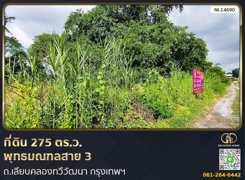 ที่ดินเปล่า ถมเเล้ว อยู่ตรงข้ามบริษัทไทยน้ำทิพย์ หน้ากว้าง 21 เมตร ลึก 70 เมตร
