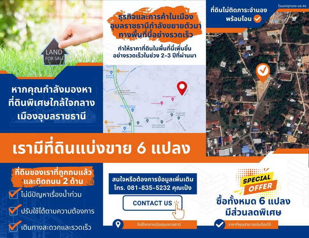 ขายด่วนที่ดินพร้อมหอพัก ใจกลางเมือง หลัง บขส. ขนส่ง – ใกล้บิ๊กซี – ใกล้ถนนคลังอาวุธ จังหวัดอุบลราชธานี ที่ตั้ง : ตำบลขามใหญ่ เมืองอุบลราชธานี จังหวัดอุบลราชธานี ขนาดเนื้อที่ : 92 ตารางวา รายละเอียด สถานที่ใกล้เคียง ราคาขายสุดคุ้ม: 1.4 ล้านบาทเท่านั้น! สนใจติดต่อเจ้าของโดยตรง อย่าปล่อยให้โอกาสดีๆ หลุดมือ!