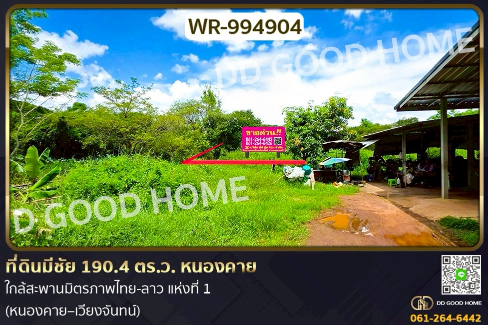 ขายที่ดินพร้อมบ้าน ทำเลดี จังหวัดหนองคาย ที่ตั้ง : บ้านเลขที่ 187 หมู่ 9 บ้านนาคลอง ตำบลวัดธาตุ อำเภอเมือง จังหวัดหนองคาย ขนาดเนื้อที่ : 1 งาน 83 ตารางวา รายละเอียด จุดเด่นของทำเล ขายราคา 1,200,000 บาท